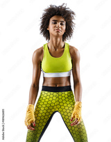 Resting time. Young boxer girl isolated on white background. Strength and motivation