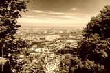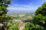 Beautiful aerial view of the village from the Mountain of San Marino. The Republic of San Marino.
