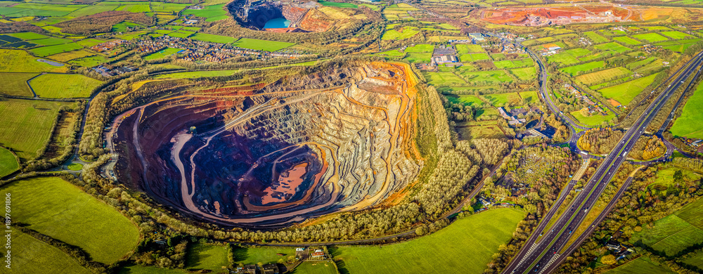 Aerial open-pit quarry and industrial landscape near Coalville, Leicestershire