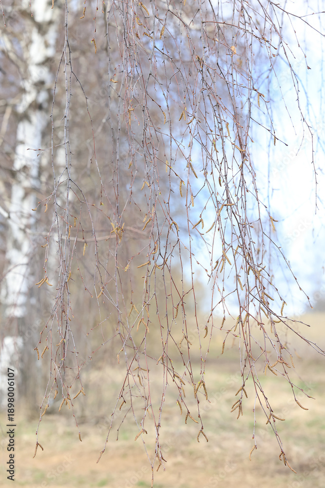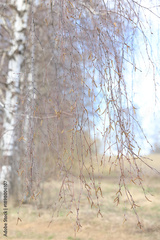 Landscape of early spring, trees and nature waking up, branches without leaves, first buds on the trees