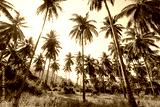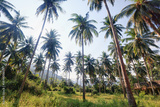 Coconut palms against the sky, tropical summer landscape, view from a southern vacation on the island