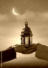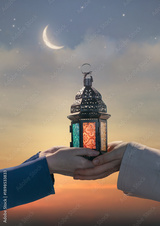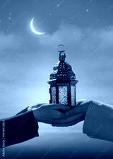 Ornamental Arabic lantern with burning candle