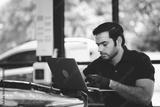 Professional mechanic holding the tablet for maintenance checklist vehicle, Software for manager check to repair