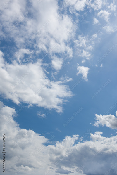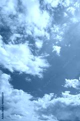 Vast sunny, deep blue sky with white clouds background. Photograph taken with polarizing filter