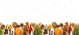 Different spices, seasonings and herbs isolated on white. Seamless horizontal pattern.