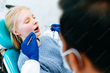 young confident asian male dentist Medical treatment to a female patient at the clinic. Dental clinic concept.