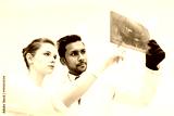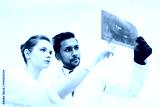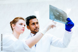 Multiracial dental team checking teeth x ray of patient. Dental clinic concept.
