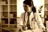 Doctor working at a desk with a laptop and notepad