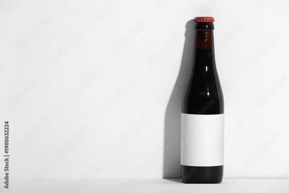 Bottle of cold beer on grey background
