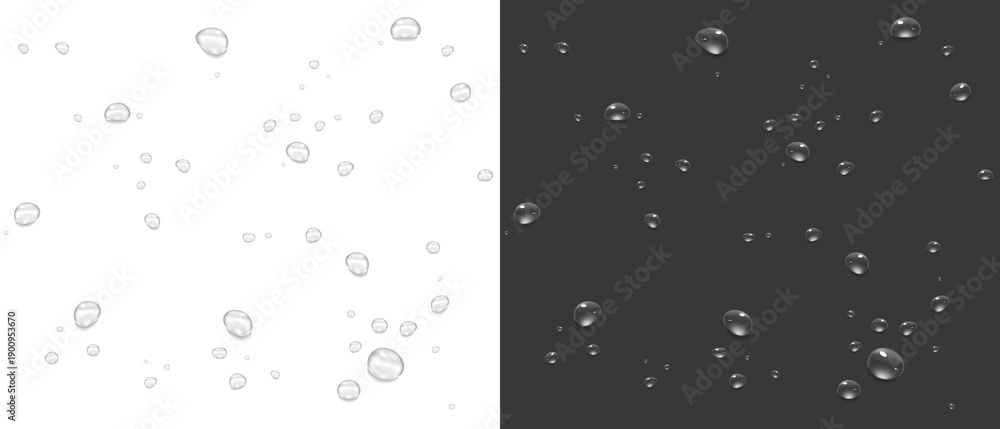 Realistic water drops. PNG drops, condensation on the window, transparent water drop. Abstract water drops, bubbles on transparent background, digital liquid design, Stock royalty free
