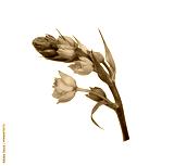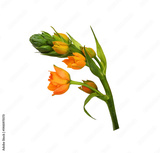 Part of beautiful sprig of Orange ornithogalum flowers and buds isolated on white or transparent background
