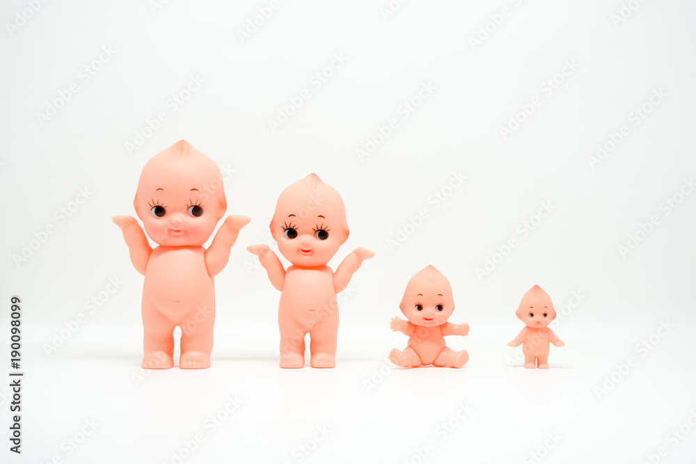 Set of naked dolls family on white isolated background.