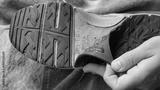 A male hands repair shoes glueing the rubber sole of a sneaker with glue. Favorite shoes. The concept of a poor life. Close-up top view the process. High quality 4K footage.