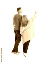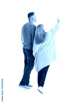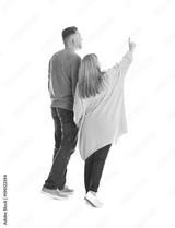 Mature couple in casual clothes walking on white background