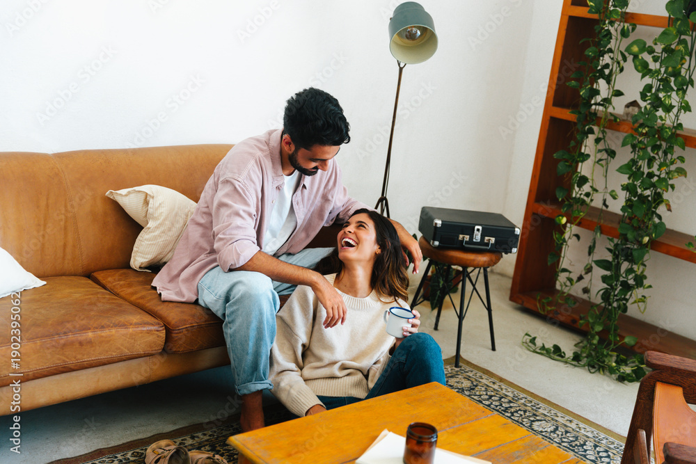 The softest laughter: A couple sharing an embrace indoors