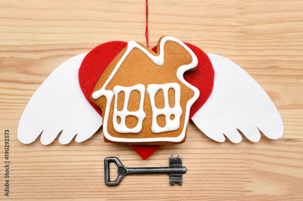 Cookies in the form of a house on wooden background