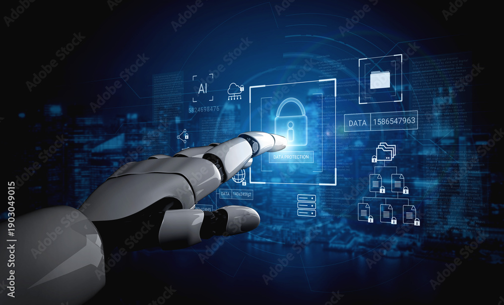 AI managing and encrypting sensitive data, monitoring cybersecurity threats, and ensuring regulatory compliance across digital systems for safe information protection Parse