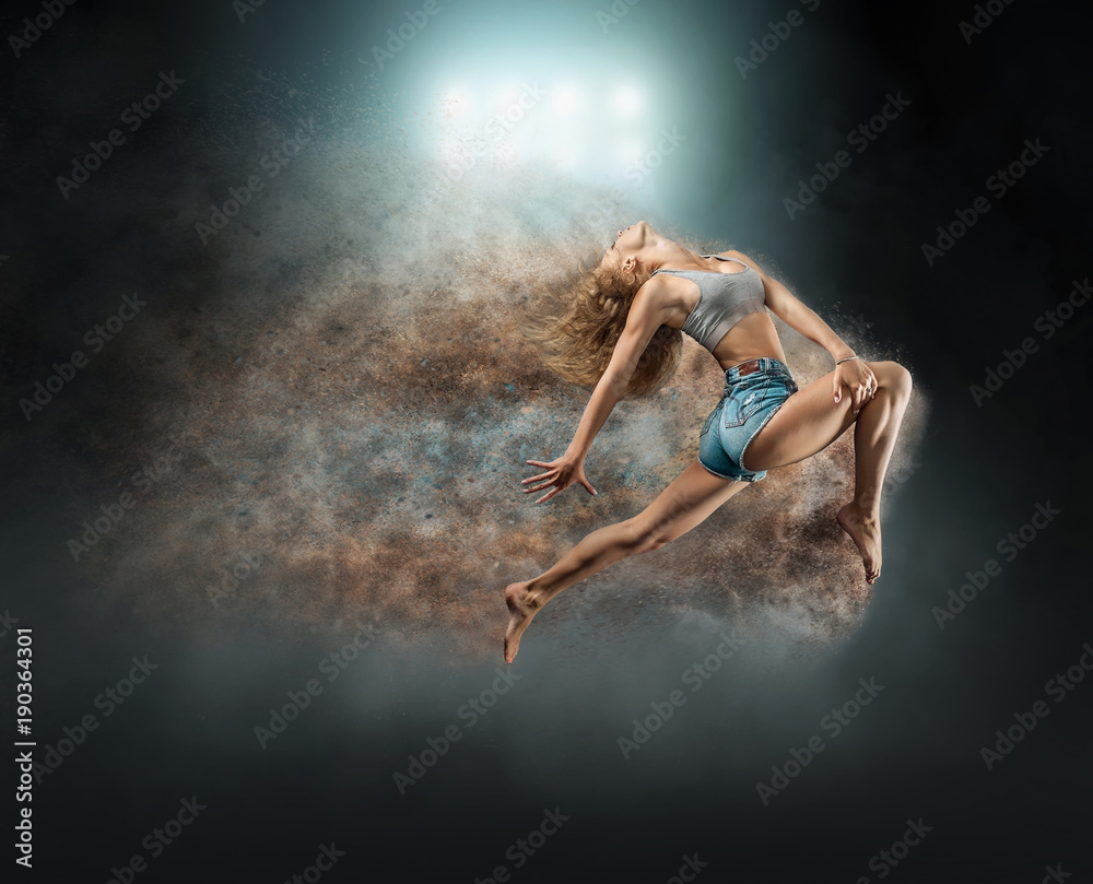 One person, dancer, woman in dynamic beautiful action figure un