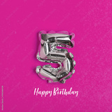 Silver foil number 5 celebration balloon on a bright yellow background