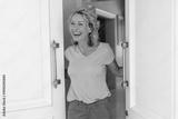 Caucasian senior woman smiling while opening the front door of house
