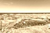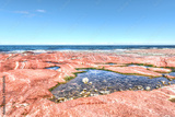 Red colorful rocks tide pool closeup on beach shore of Saint Lawrence river in Sainte-Luce, Quebec, Canada in Gaspe region