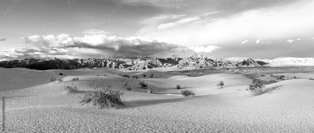 Mesquite flats in the death valley desert in sunset light