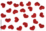 Multiple small red fabric hearts isolated in PNG on transparent background