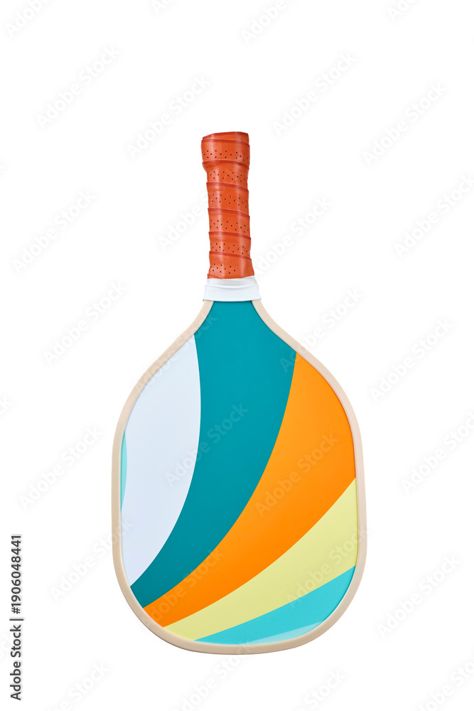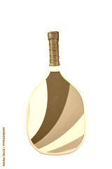 Pickleball paddle with brown leather handle and striped design isolated in PNG
