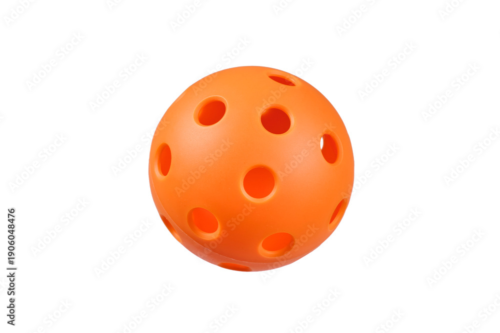 Orange plastic pickleball isolated in PNG on transparent background