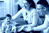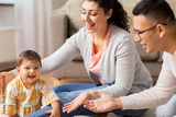 happy family with baby daughter at home