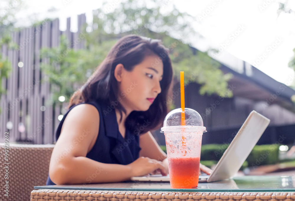 asin woman work from home concept outdoor shot
