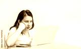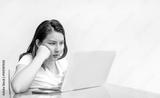 asian woman use laptop and mobile in busy