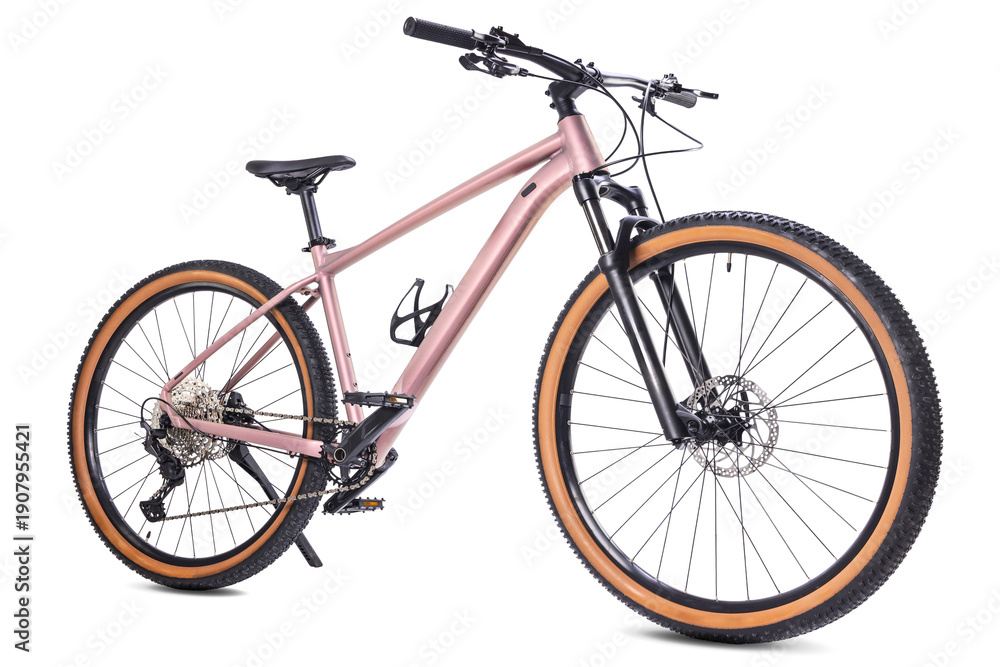 Bicycle studio isolated on white background, modern mountain trail bike.