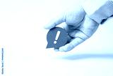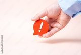 A hand holds a comment with an exclamation mark. A harsh comment, a sharp reaction. A complaint and dissatisfaction. Feedback culture shapes reputation, crisis response, and brand trust.