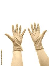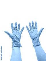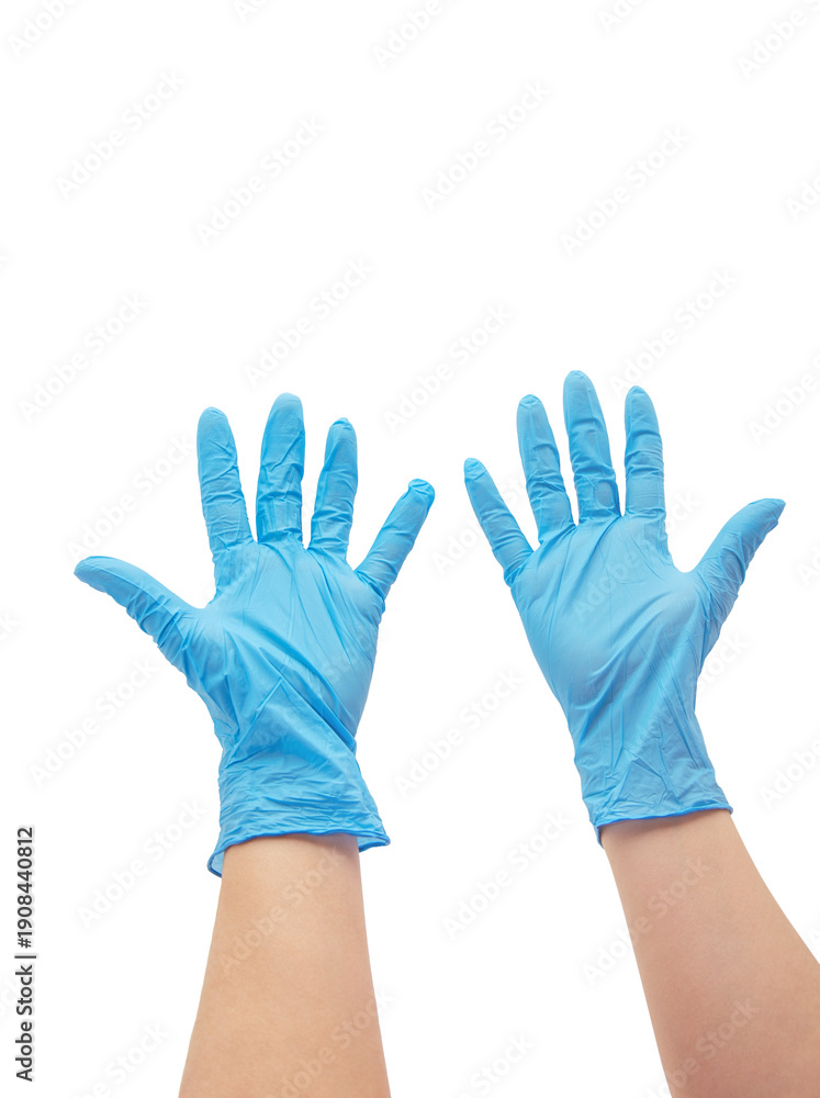 Doctor putting on protective gloves, isolated on white