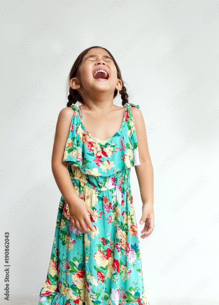 cute asian kids girl screaming or laugh action on white background