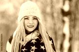 Winter portrait of young teen girl with USA flag. Beauty Joyful Model Girl laughing and having fun in winter park. Beautiful young woman outdoors. Enjoying nature, wintertime