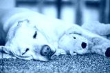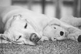 Dog resting with his plush toy