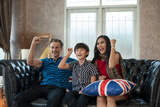 Happy time, family watching TV together. Happy family, lifestyle Concept.