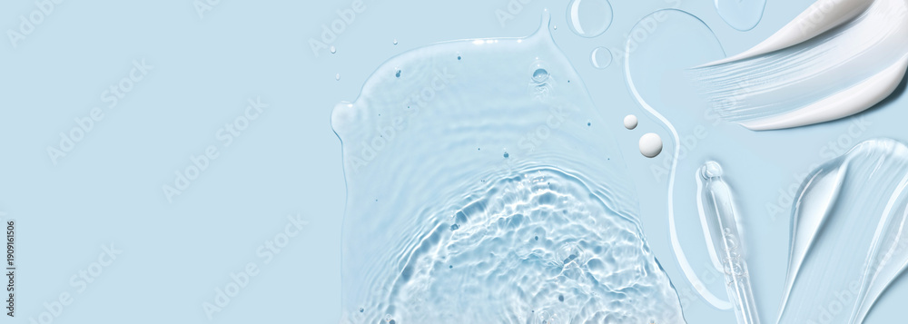 cosmetic cream smears, smooth and shiny texture, water texture ripple wave clean transparent water drops abstract blue background