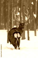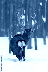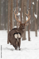 Red deer in winter forest