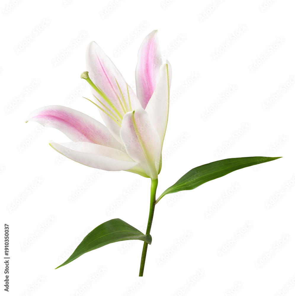 Pink and white lily flower (blossoming) isolated on white or transparent background