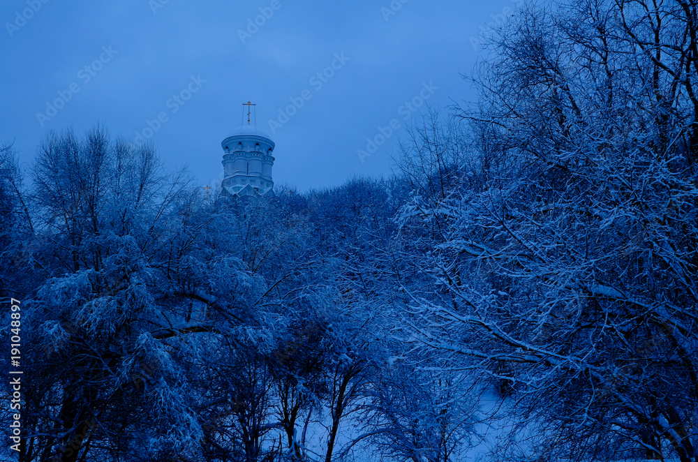 Winter view to Church of John the Baptist in Dyakovo after snowfall, Kolomenskoye, Moscow, Russia