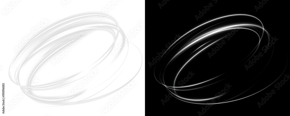 White neon ring glow effect - abstract light speed lines, glowing round frame and futuristic motion ellipse.overlay