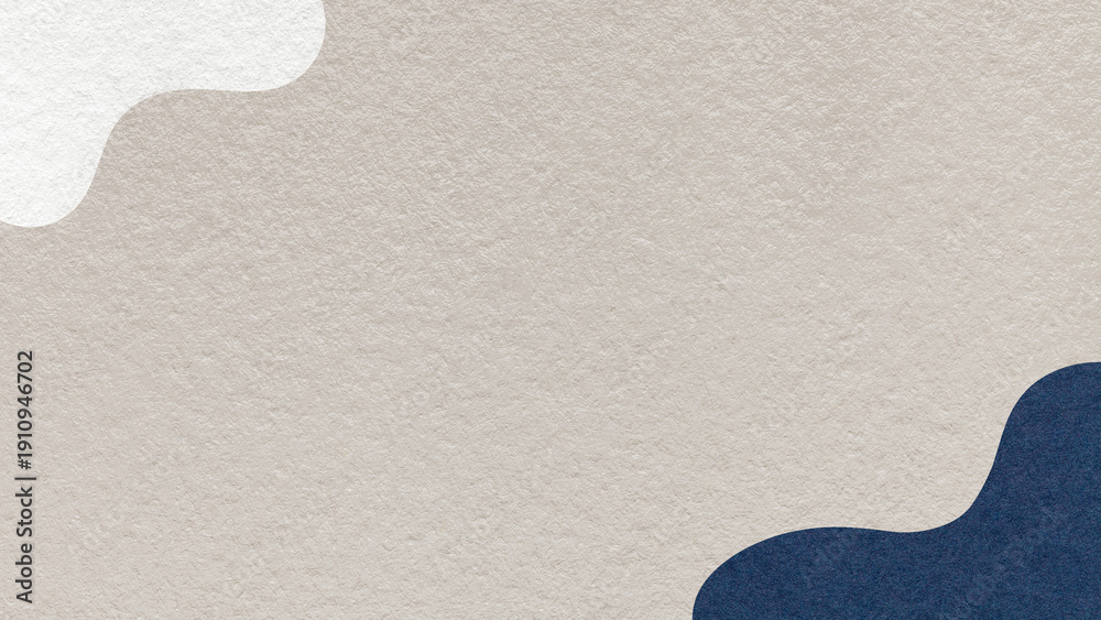 Cool beige textured paper background with dark blue white fluid blob corner shapes and copy space for banner, presentation