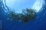 Discarded fishing net. Ghost net environmental pollution problem
