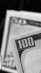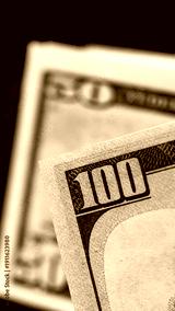 Close up of a hundred dollar bill with a fifty dollar bill in the background