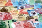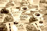 Big pile of Hong Kong dollars money bills banknotes close up. Lots of money of Chinese Hong Kong HKD currency cash in big bunch. Economics and business in HongKong