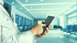 Healthcare And Medicine. Doctor using a digital tablet in clinic
