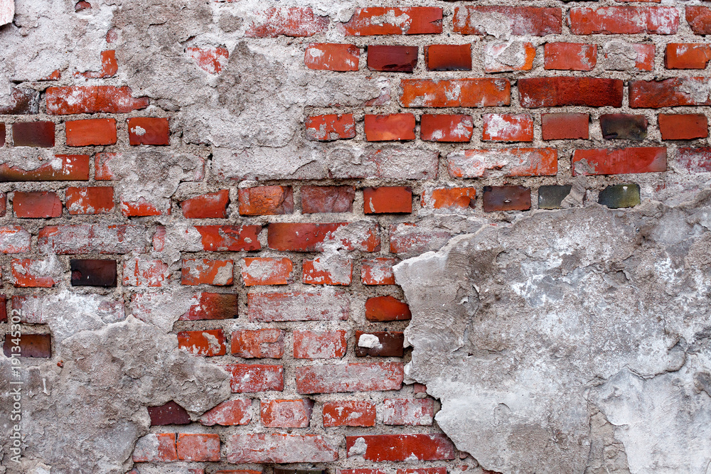 Текстура кирпичной, старой стены с обломками цемента